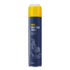 Seque la superficie del evaporador del aire acondicionado. Para hacer esto, arranque el motor y configure las siguientes condiciones de calefacción y ventilación durante 10 minutos: se apaga el aire acondicionado, se enciende la recirculación, se instala el suministro de aire en el espacio para los pies, se ajusta la temperatura y la velocidad del ventilador al máximo. Agite bien el frasco antes de usarlo. Coloque el MANNOL Air-Con Fresh en la zona de entrada del sistema de circulación de aire (normalmente la entrada de aire se encuentra en el espacio para las piernas del asiento del acompañante). Cambie el suministro de aire al parabrisas. Luego presione el spray hasta que encaje en su lugar. Mantenga las ventanas y puertas cerradas durante 10 minutos mientras se realiza el proceso de desinfección. Luego apague el rociador y seque el evaporador del aire acondicionado usando la misma configuración descrita anteriormente. Apague el motor y ventile el interior durante al menos 10 minutos.